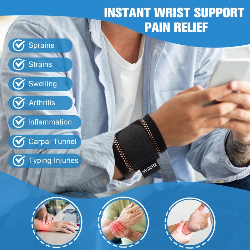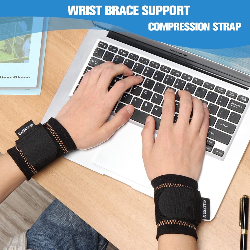 MUSEFITR Wrist Brace With Strap 2 Pack-Copper Wrist sleeve for Arthritis and Wrist Pain-Wrist Support Band for Sports-Medium