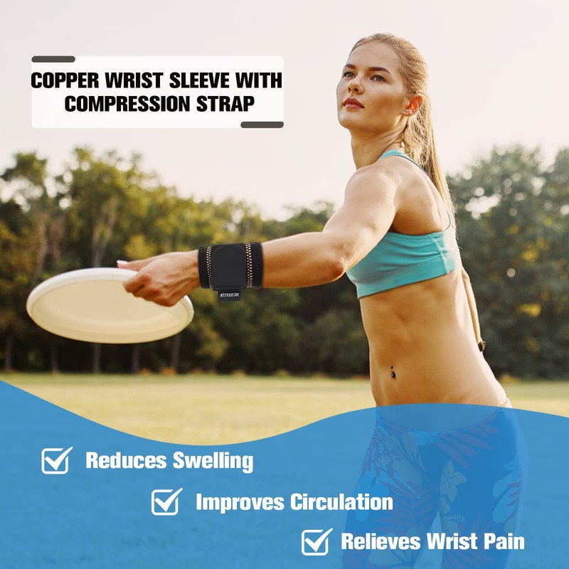 - PREMIUM COPPER-INFUSED FABRICS: WITH PREMIUM COPPER-NYLON FABIRCS, this wrist brace is comfortable and offer compression to support wrist area. Wearing this wrist sleeve band ,which is helpful to support your wrist during exercise .