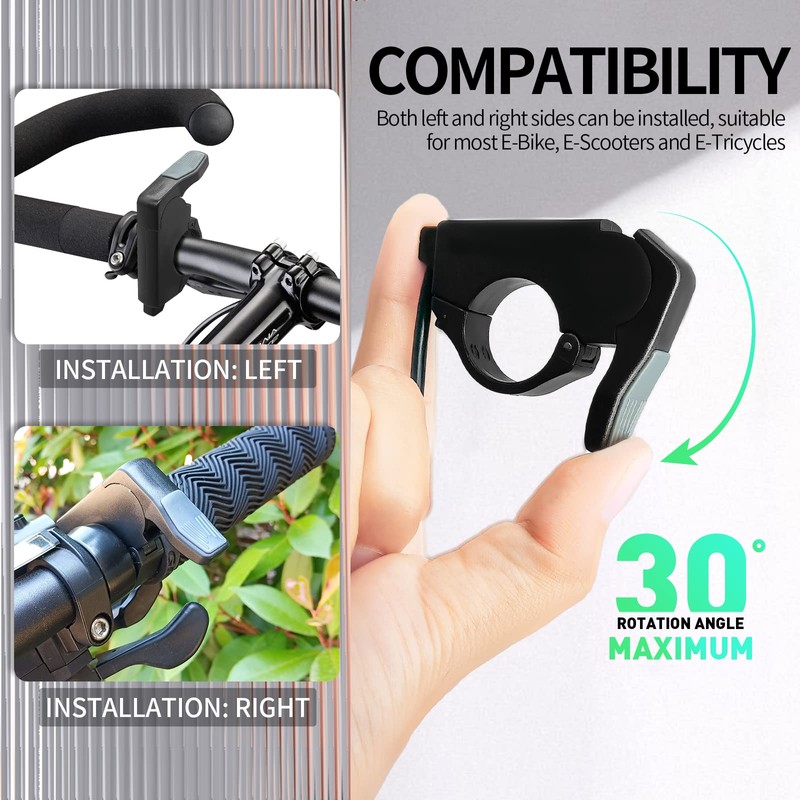 - Compatible with left/right hands: Available for left or right hand use, this thumb throttle is suitable for most electric bicycles and scooters. Suitable for common lithium batteries (24V 36V 48V 52V 60V 72V)