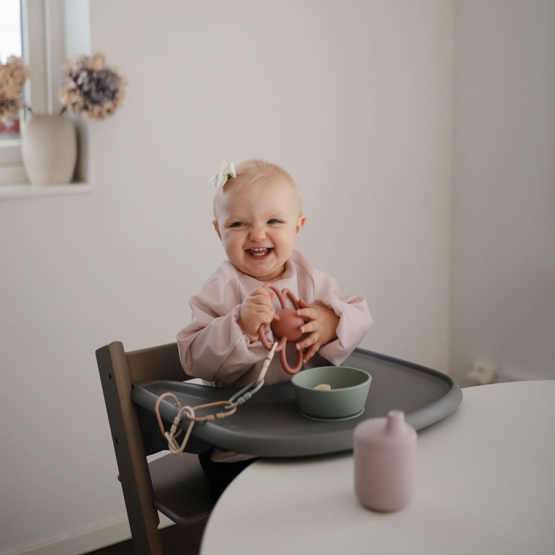 mushie Long Sleeve Baby Bib | Mess Free & Waterproof Fabric for Toddlers | Adjustable Fit for Ages 6-24 Months (Fog)