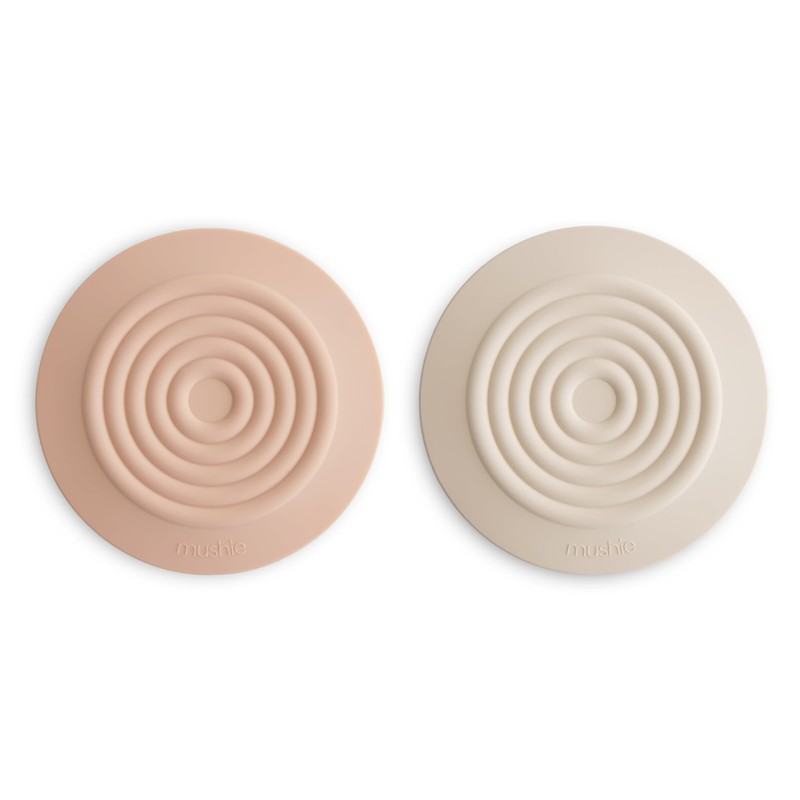 mushie Silicone Drain Stopper 2-Pack | 5.5 inch Diameter Bathtub Flat Suction Cover (Blush/Shifting Sand)