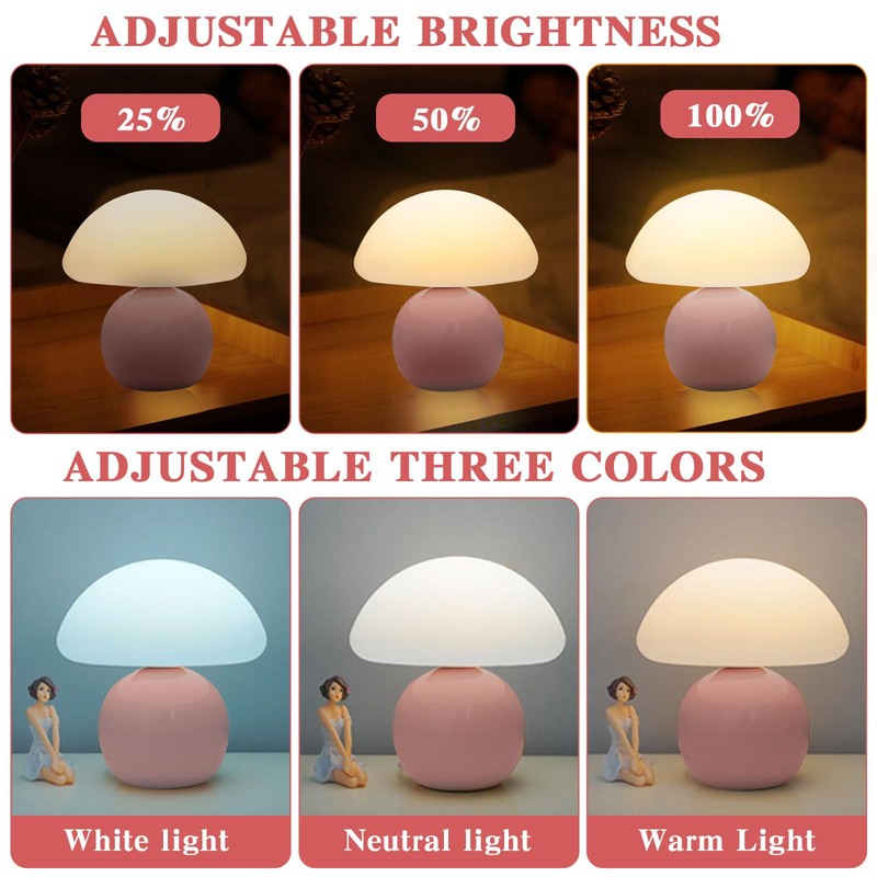 Mushroom Bedside Lamp, Table Lamp, LED Mushroom Table Lamp, Mushroom Lamp with Ceramic Base, Dimmable Table Lamp, Decorative Living Room for Bedroom, Decoration for Children's Room, Bedroom and Living