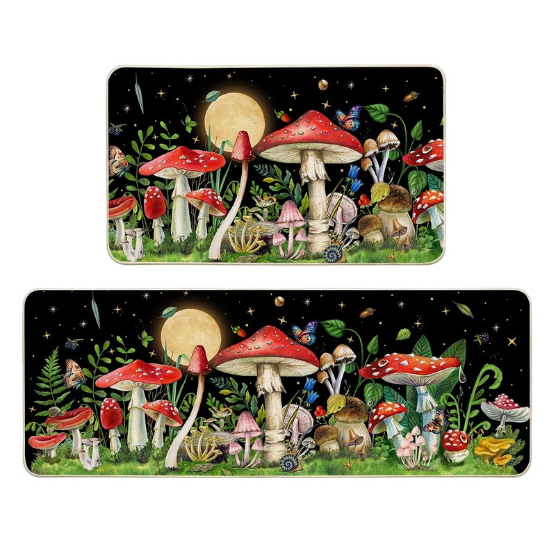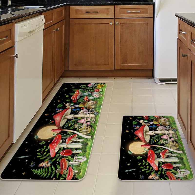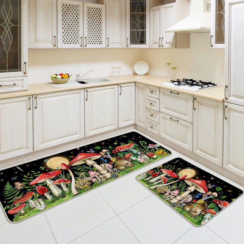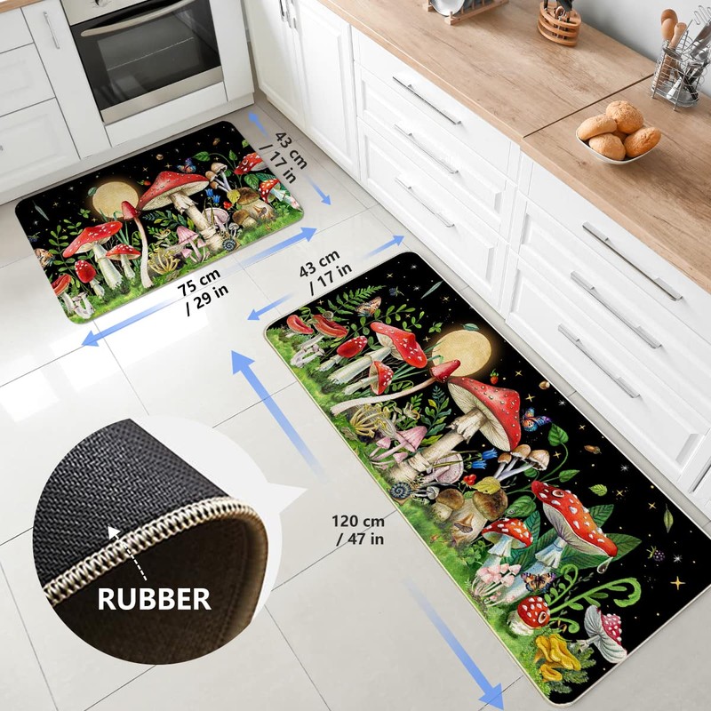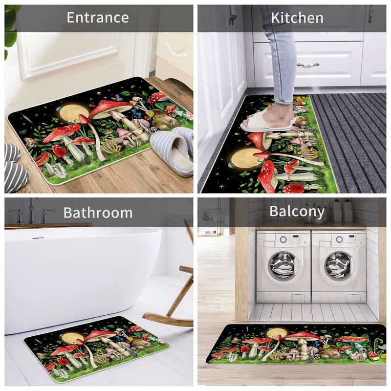 - Mushroom anti slip kitchen rugs and mats are suitable for indoor front mat and kitchen carpet, front of sink, bathroom, laundry room, living room, bedroom, office, front door, patio, farmhouse, counter, indoor, outdoor, etc