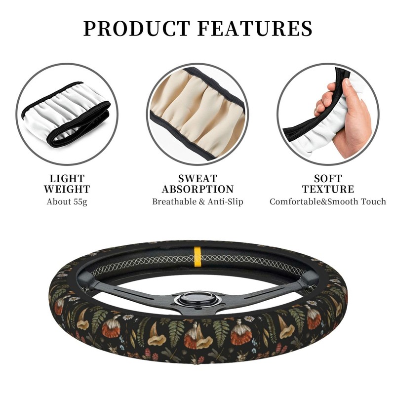 Mushroom Retro Witchcraft Fern Plant Steering Wheel Cover for Women Men Girls Car Accessories Decor Anti-Slip Neoprene Auto Steering Wheel Covers Protector Universal 15 Inch
