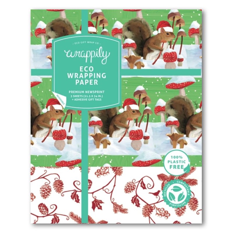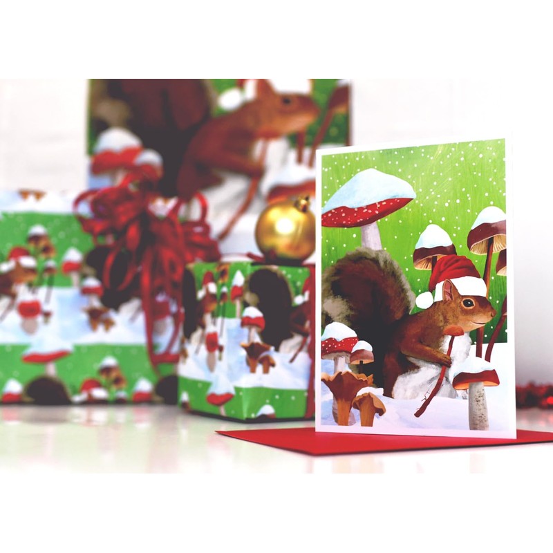 Mushroom Squirrel - Reversible Holiday Wrapping Paper - Eco Gift Wrap Allport Editions x Wrappily