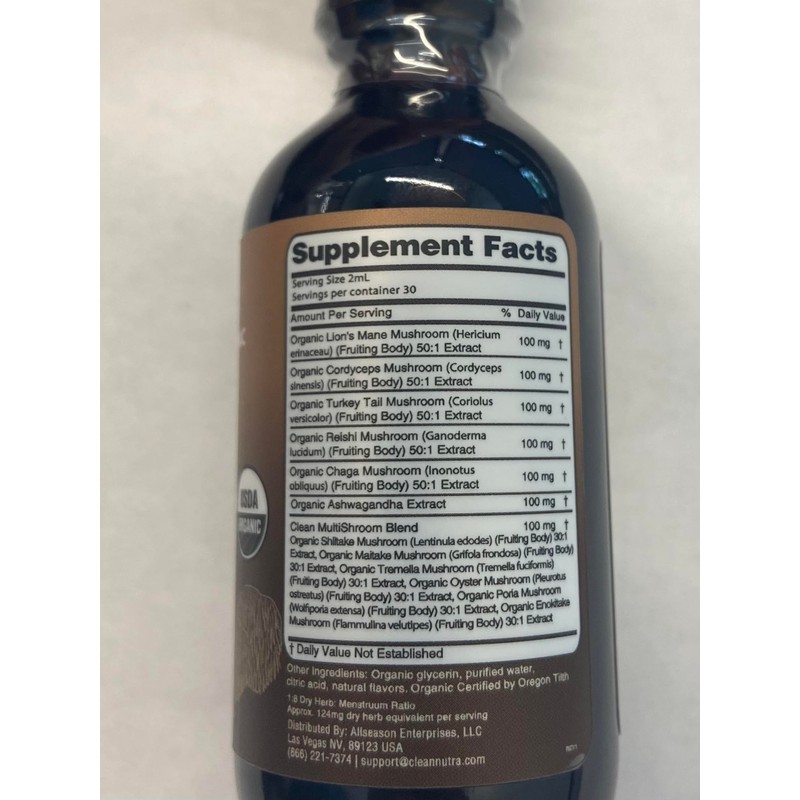 Mushroom Supplement Liquid Drops with Lions Mane Turkey Tail Cordyceps Reishi Chaga Shitake Maitake Tremella Oyster Mushrooms Poria Supplement and Enokitake Mushrooms Complex Blend by Clean Nutra