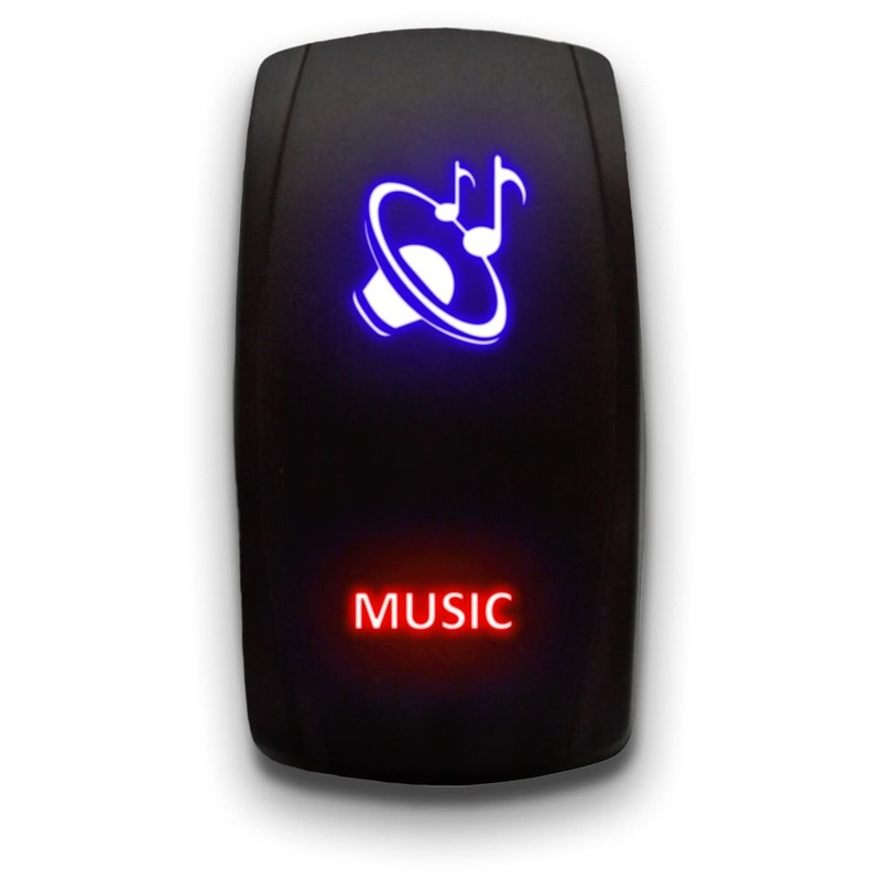 Music - Blue/Red - Laser Etched Toggle Switch 20A 12V - Vertical Rocker Switch 5-Pin DPST