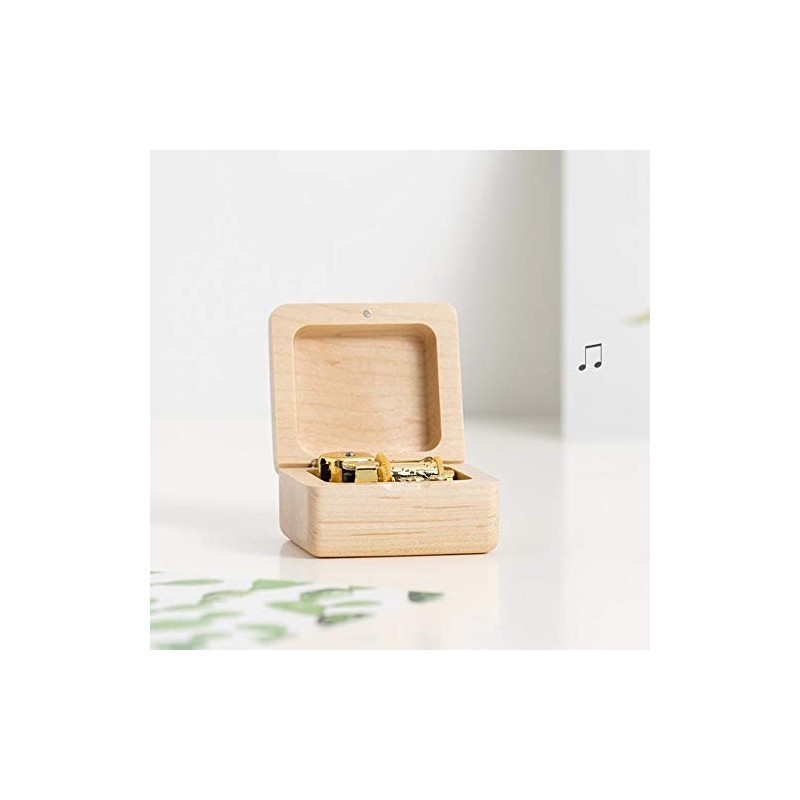 Music Box Mini 18 Note Wind - Maple Wooden Music Box (Song: Happy birthday to you//Gold Plated Movement))