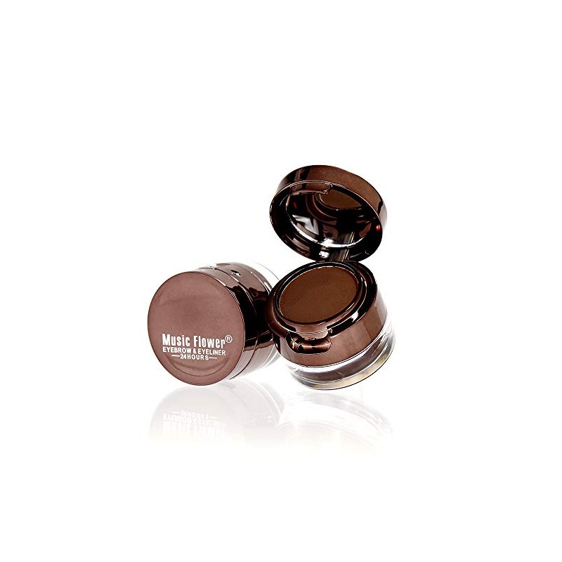 Music Flower Gel Eyeliner Eyebrow Powder, Black and Brown Waterproof Smudgeproof Long Lasting Makeup Eyeliner Gel with Brush Mirror, 0.49 Ounce, Pack of 2