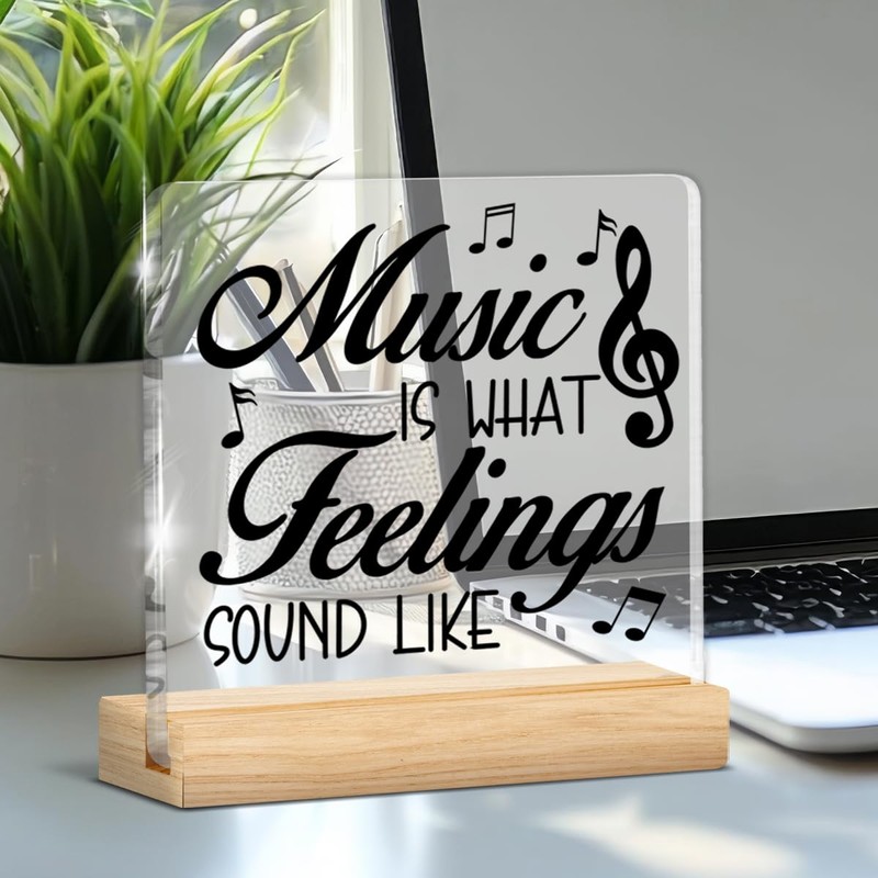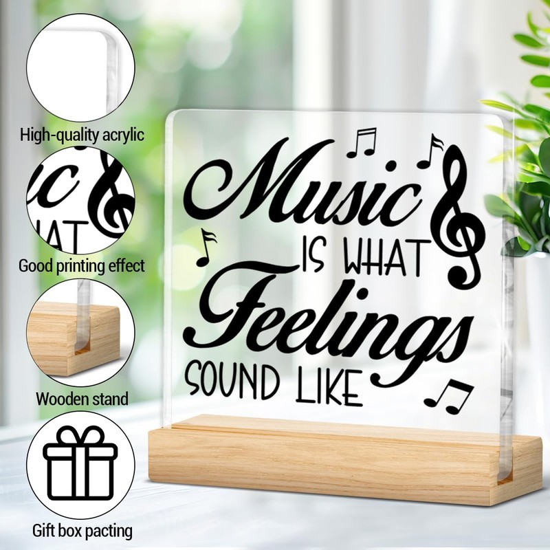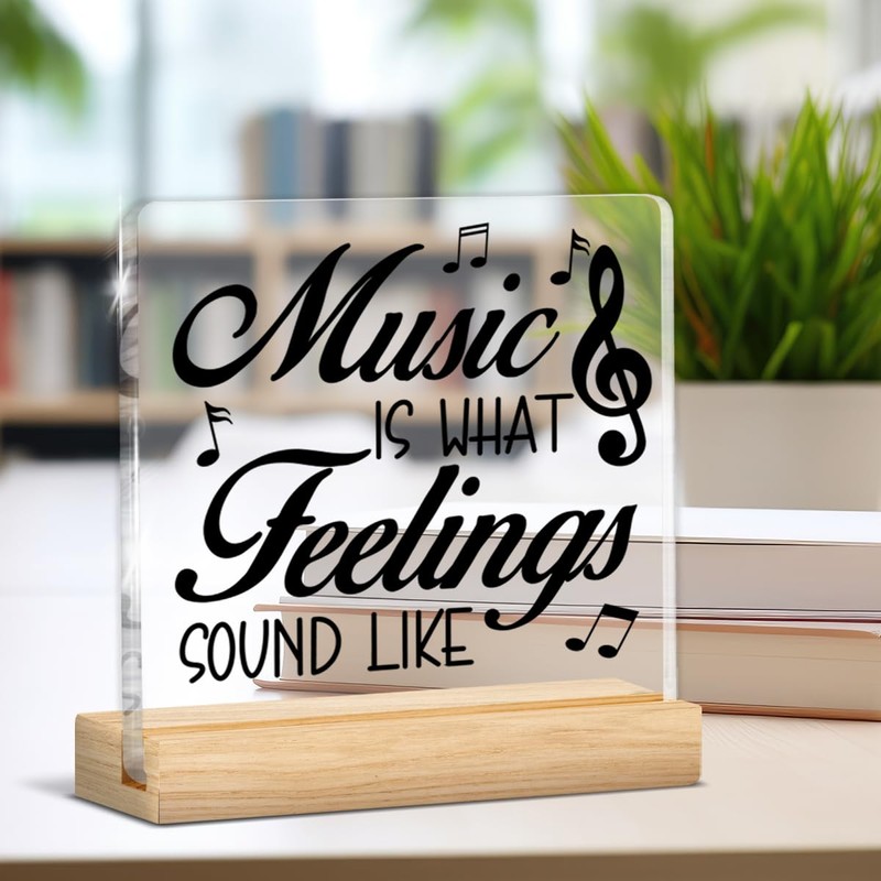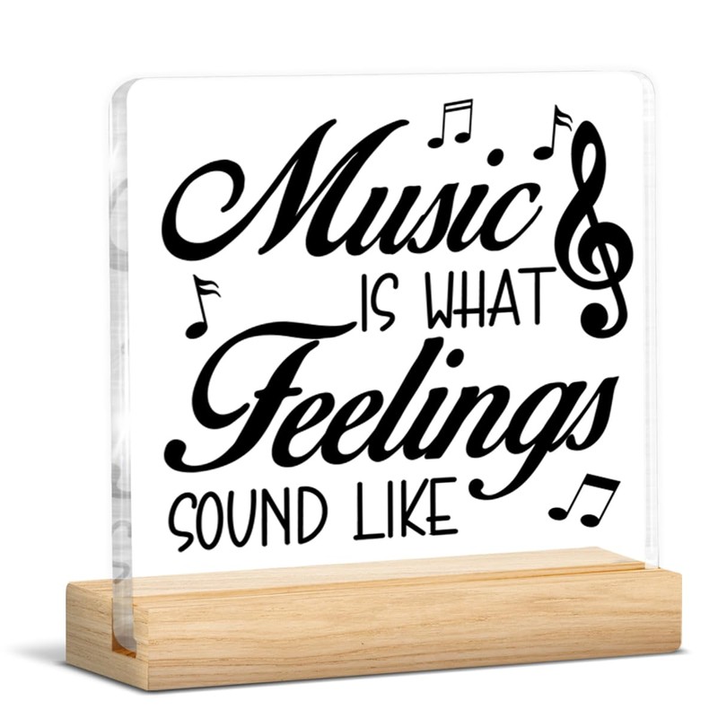Music Is What Feelings Sound Like Clear Acrylic Desk Decorative Sign Desk Decor, Gifts for Music Teacher Musicians