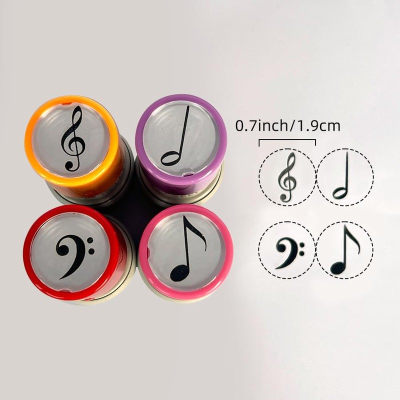 - Package Content: Includes 4 pre-inked stamps featuring Treble Clef, Bass Clef, Eighth Note, and Half Note, perfect for musicians, teachers, and craft enthusiasts.