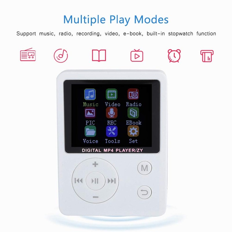 - Multiple play modes - Support music, radio, recording, video, e-book, built-in stopwatch function. Comes with a card slot, plug and play, support MP3 music format and AMV video format.
