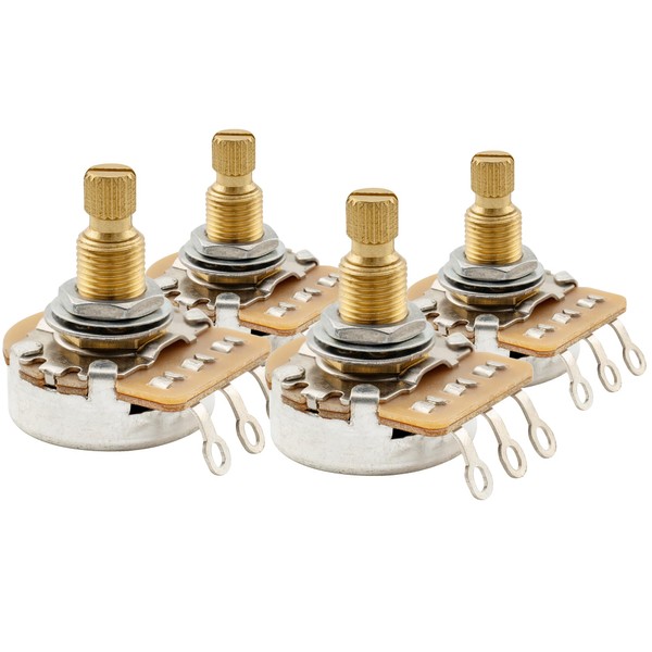 Musiclily Pro HD B25K Pots Brass Metric Split Standard Shaft 9.5mm Linear Taper Potentiometers for Active Pickups Electric Guitar Bass (Set of 4)
