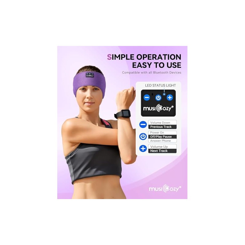 - Bluetooth Music Headband - MUSICOZY Sleep Headphones offer Bluetooth 5.4 and immersive stereo sound. With advanced Bluetooth 5.4 technology, the Bluetooth Headband is more compatible with electronic devices. Alongside 40mm composite drivers, these wireless music headband headphones deliver pure and balanced audio output with loud sound, rich bass, clear midrange, and balanced treble. This results in extraordinary clarity and detail for all music genres.