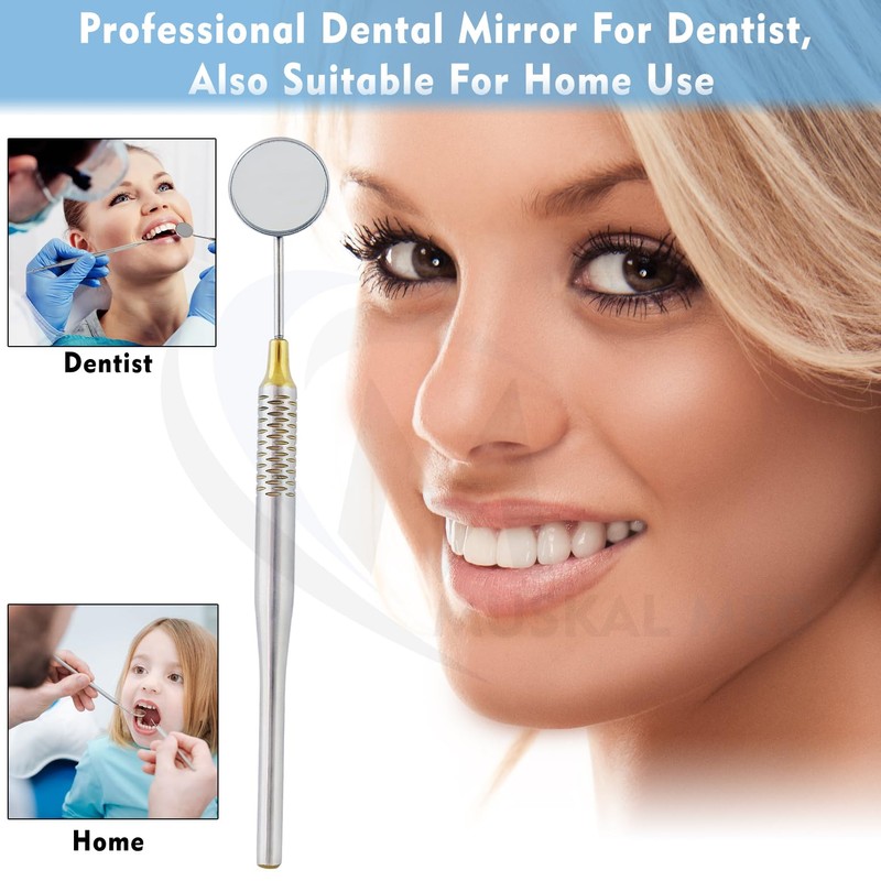 - ✔️ STAINLESS STEEL, HIGH QUALITY, AND DURABLE: This Dental Mirror With Chrome Plated Gold Titanium Thick Handle Will Last You Many Years Even With Frequent Use Because It Was Made From Excellent Medical Grade Stainless Steel. They Are An Invaluable Addition To Any Tool Kit Because They Are Made To Never Rust, Break, Or Even Bend Under Strain.