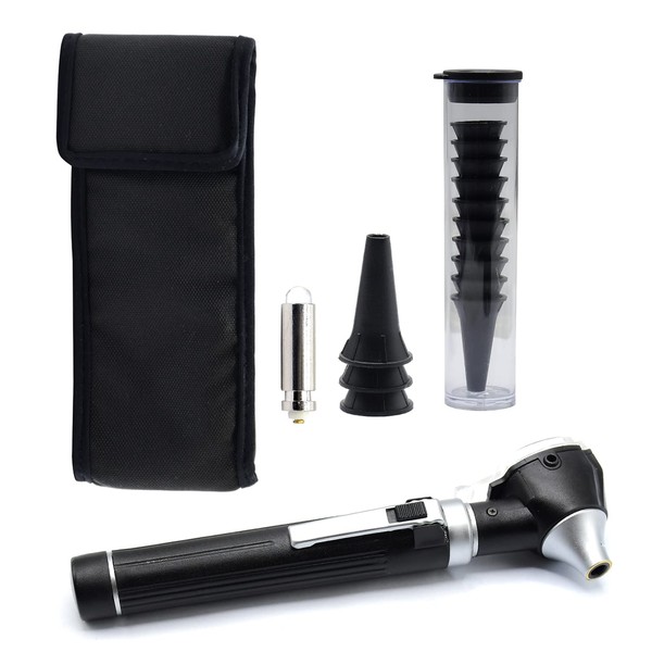 MuskalMed Compact Fiber Optic Otoscope with 9 Tips & Plastic Body