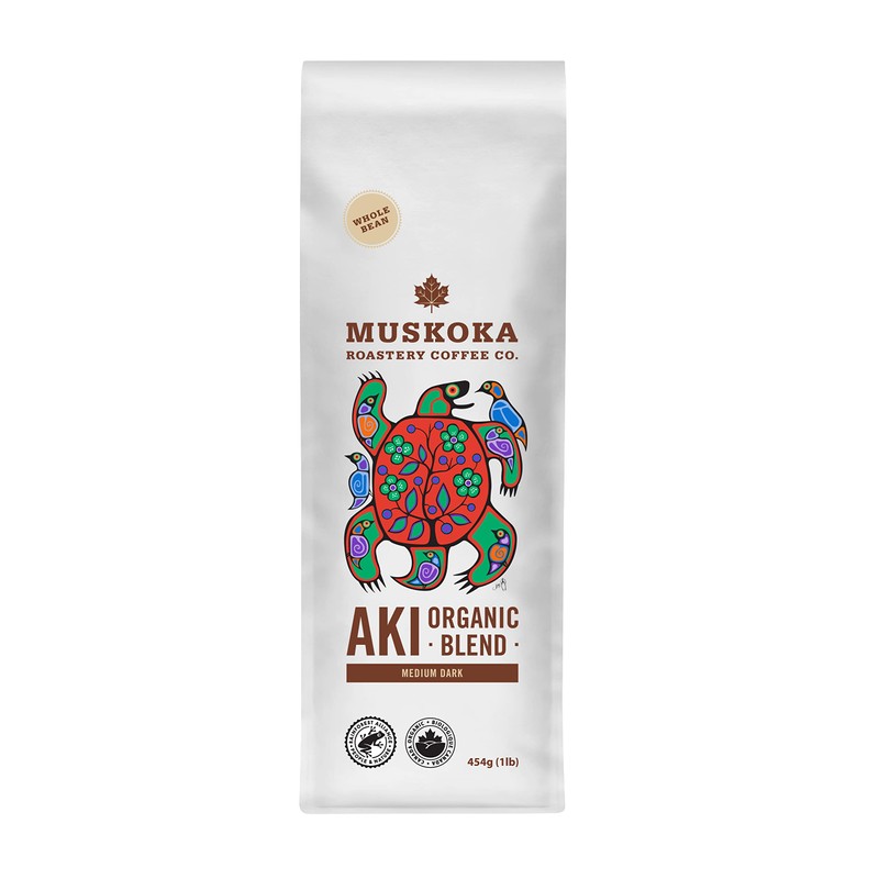Muskoka Roastery Coffee, Aki Organic Blend, Medium Dark Roast, Whole Bean Coffee, 454g