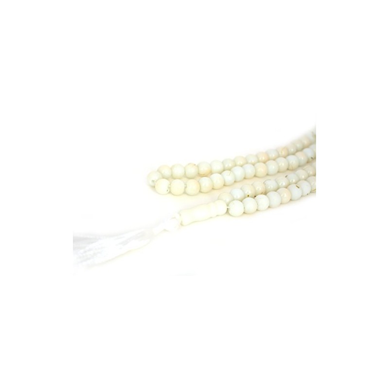 Muslim Bookmark Islamic Prayer Beads - Misbaha Tasbih 99 Glass Bead Necklace, Ivory White