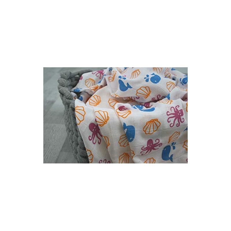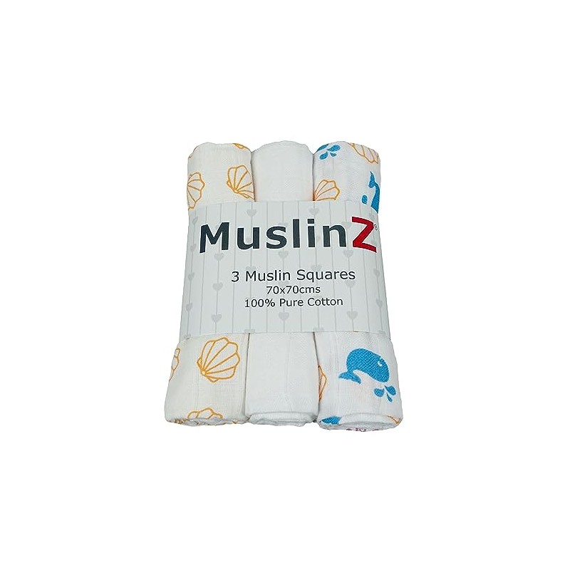 - MuslinZ Brand Pack of 3 Sealife Combo mix premium quality muslin squares/wraps approximately 70cm x 70cm