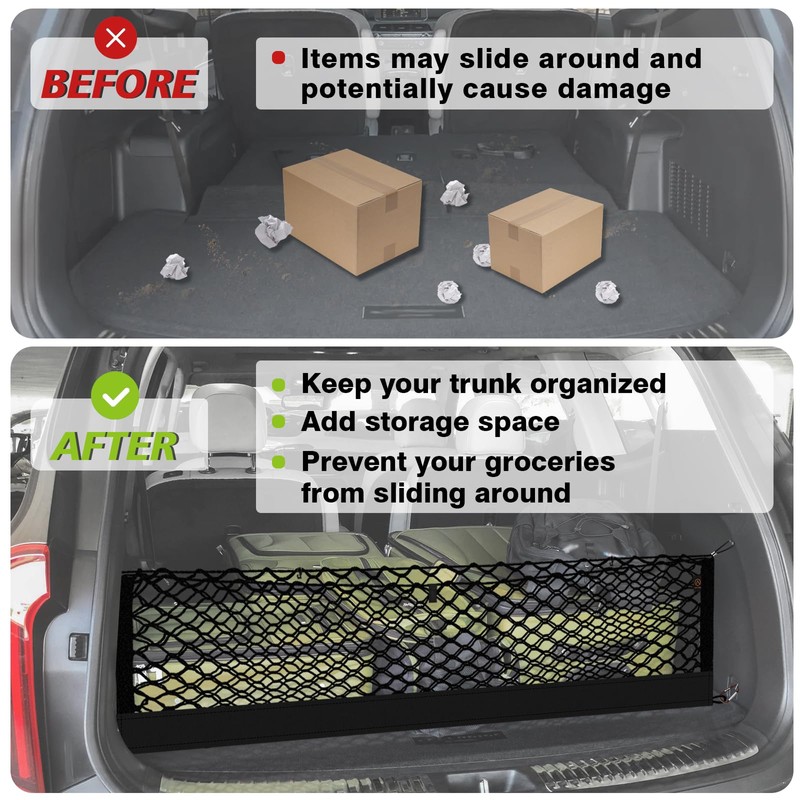 - Muslogy LockNflex Material: Securely 'locks' small items, prevents them from falling out, and at the same time prevents larger items such as groceries and tools from rolling while driving.