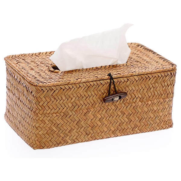 MUSONG Country Rustic Seagrass Tissue Box Cover, Rectangular, Caramel