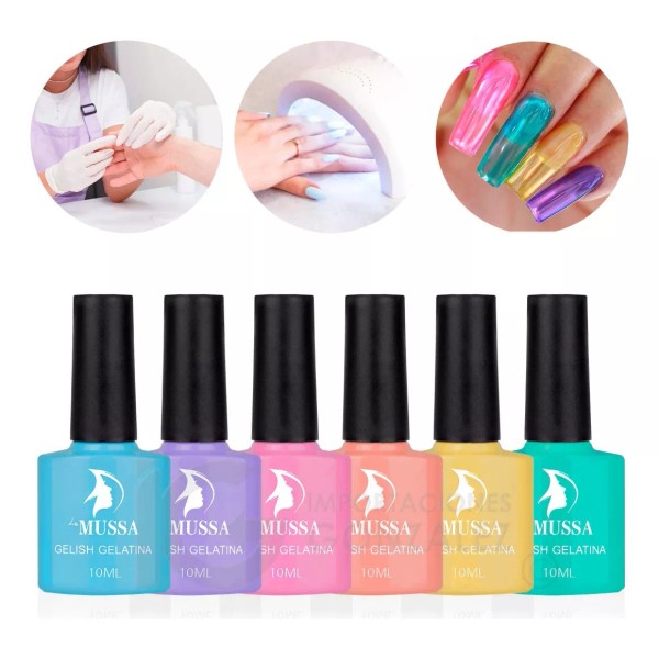 Gama De Gel Mussa 10ml. 6 pzs. Esmaltes Semipermanente Efecto Gelatina