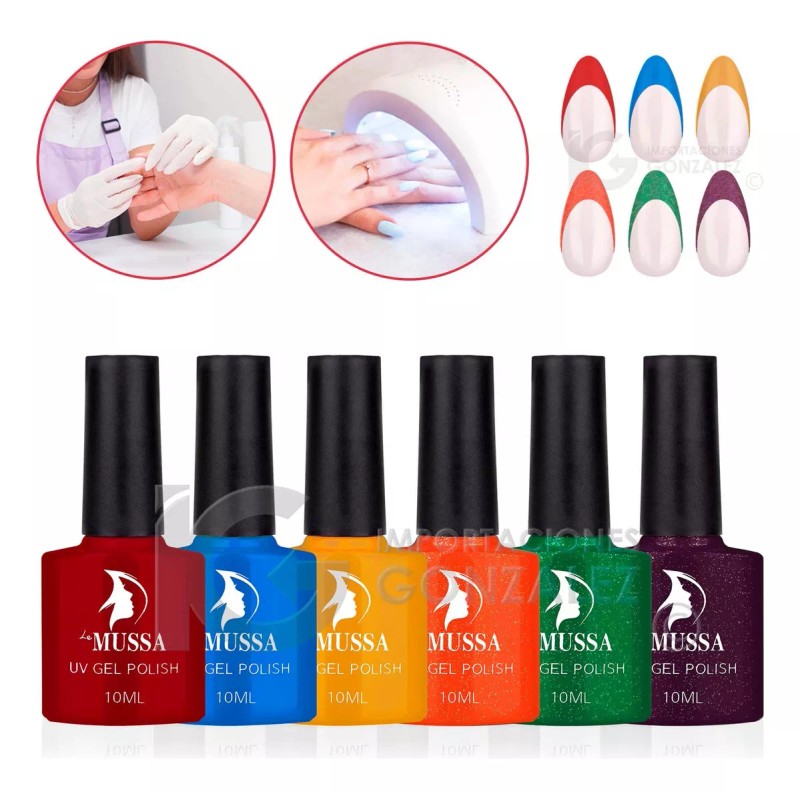 Gama De Gel Semipermanente Mussa 6 Esmaltes Para Uñas UV Color Rainbow