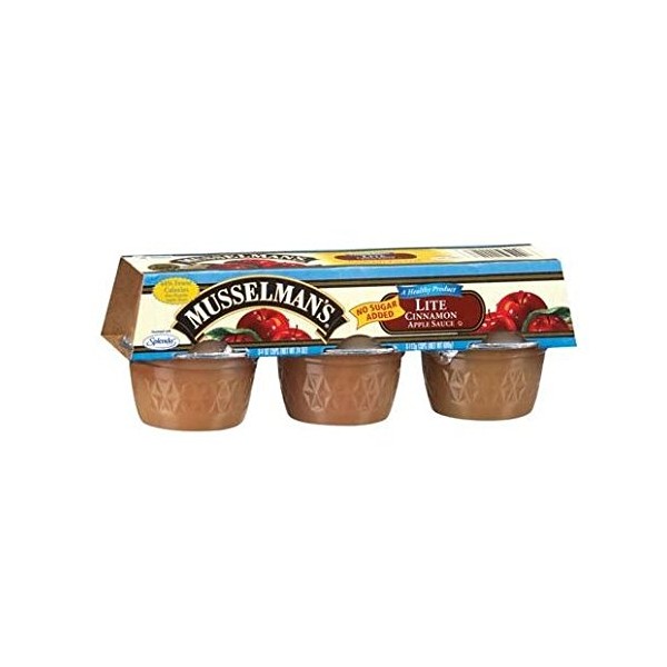 Musselman's No Sugar Added Lite Cinnamon Apple Sauce (Pack of 3) 6 - 4 oz Cups per Pack (18 Cups Total)