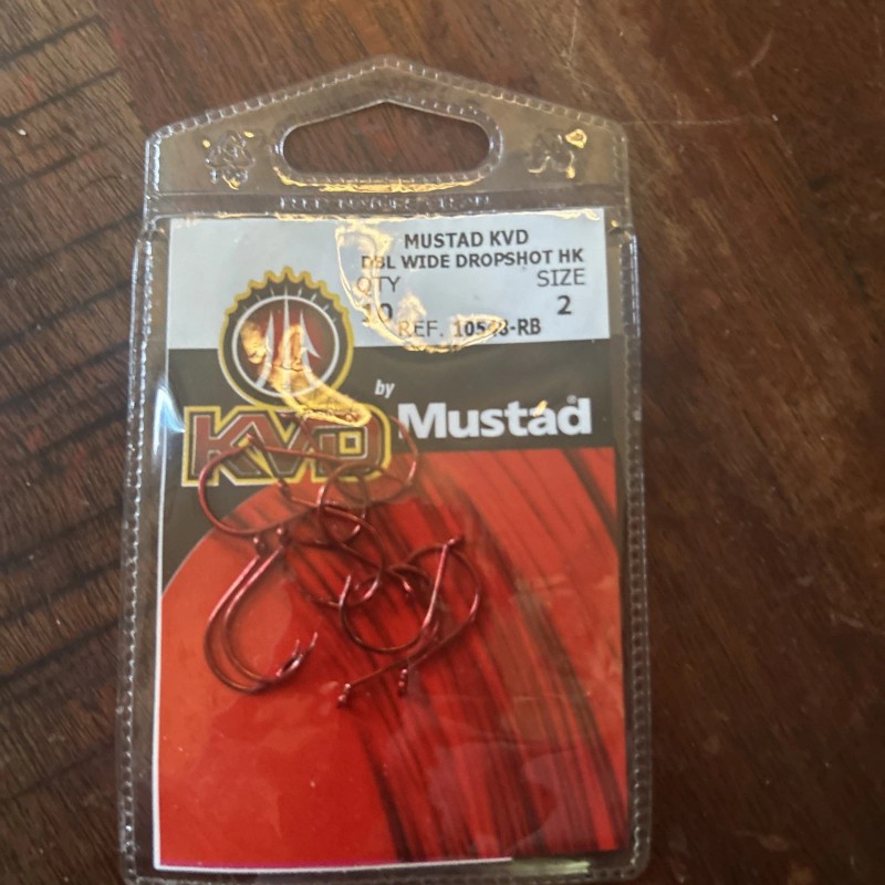 Mustad KVD dbl Wide Dropshot Hook Size 2. 10 Per Pack . Condition is New. Shipped with USPS Ground Advantage.