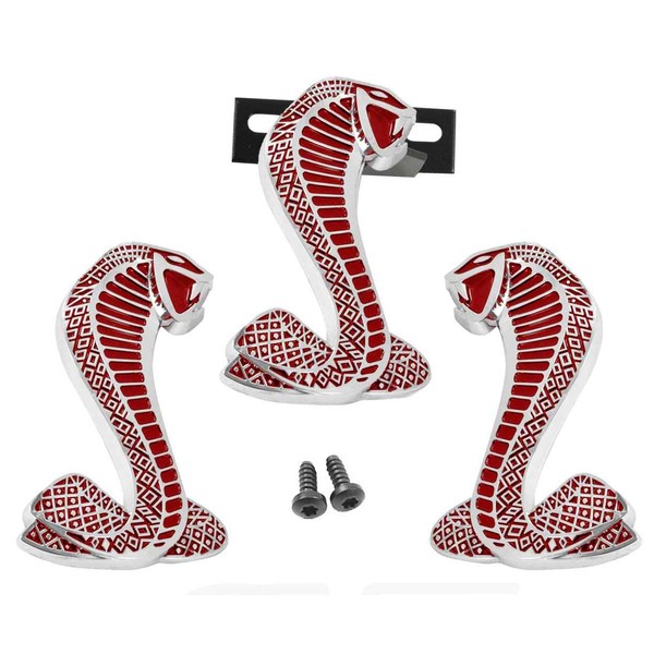 Mustang Cobra Snakes Chrome Red Fender & Grille Emblems