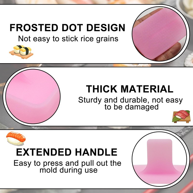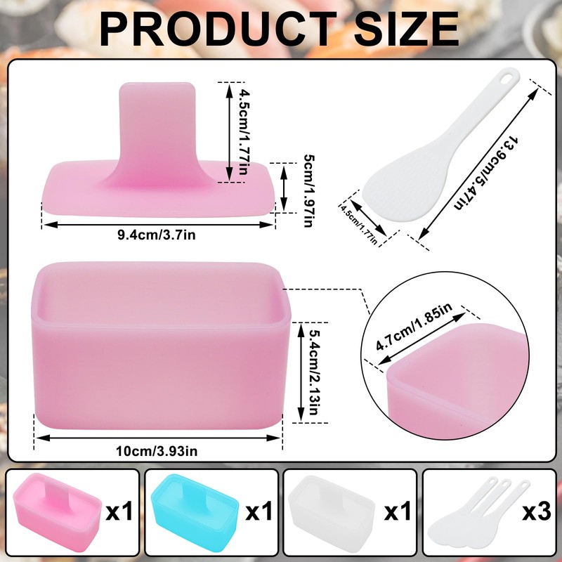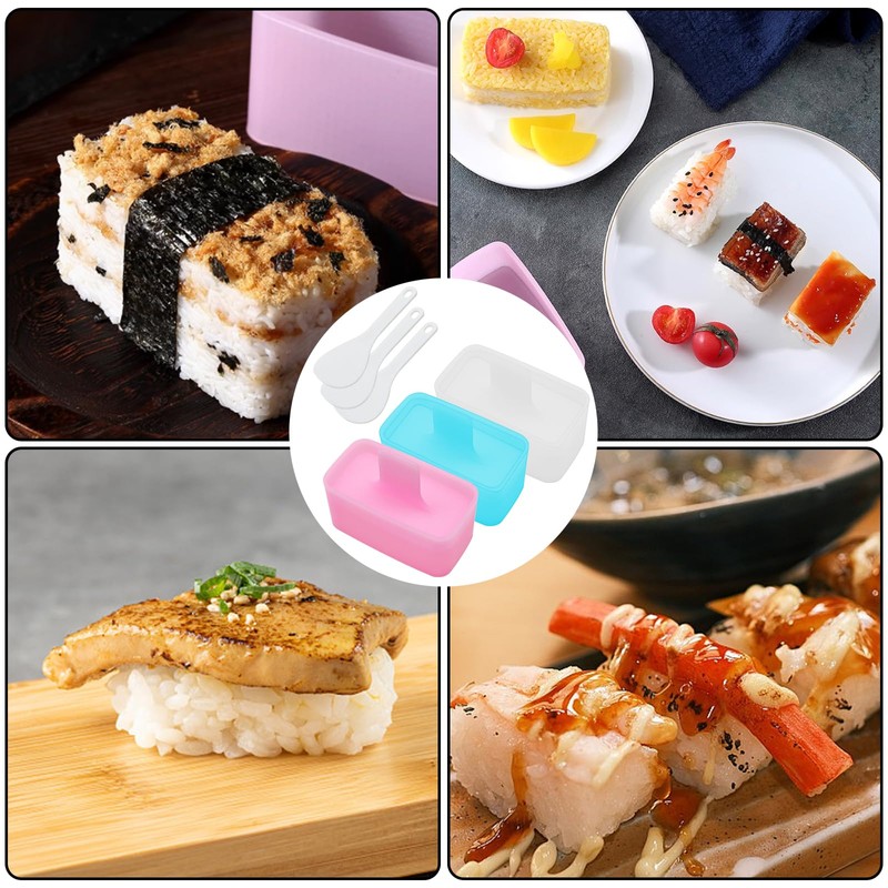 - 【3 Pieces Sushi Mold Set】The musubi press mold set includes 3 musubi press molds and 3 rice spoons, enough for your daily use and replacement.