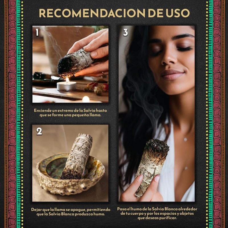 - Atmosphere of tranquillity: by burning white sage, you create an atmosphere of calm and balance in your room, ideal for meditation or yoga.