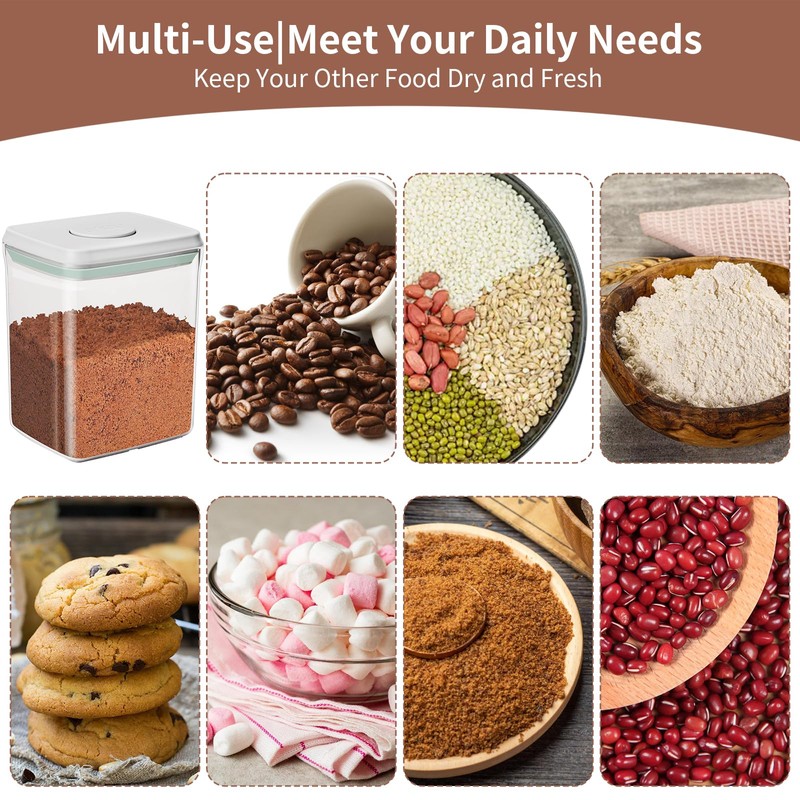 - Keep Food Fresh with Patented Airtight Lid Airtight Seal1-inch thick patented lid ensures an airtight seal, keeping your treats fresh and dry. This unique design prevents moisture and air from entering, preserving the quality of the food. The innovative button mechanism allows for easy opening and closing of the lid, making it convenient for everyday use