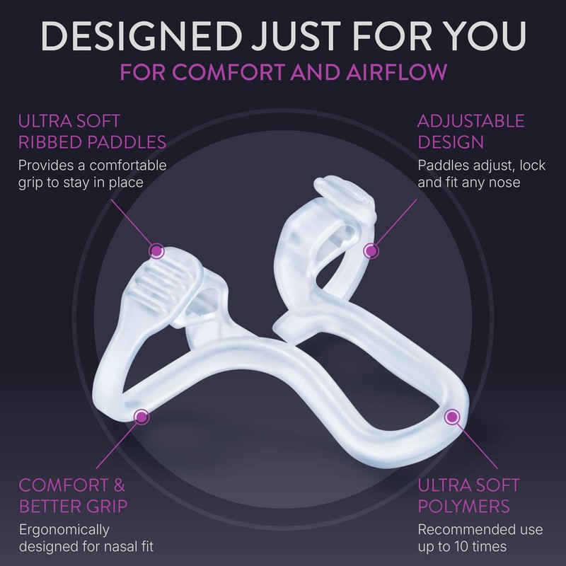 - EASY TO USE: Following the natural angle of your nose, insert the MUTE Nasal Dilators for snoring with the loops toward you to the point where only the bridge shows. Adjust each side for a secure fit and optimum airflow. Re-use our snoring solution up to 10 times per dilator.