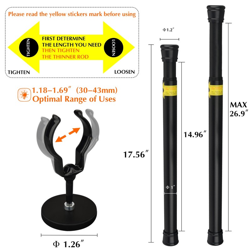 5. Package Includes: 1 set of adjustable magnetic curtain rod(extends 13” to 26")+ 2Pack D1.69” Y-clamp magnetic holder(Assembly)