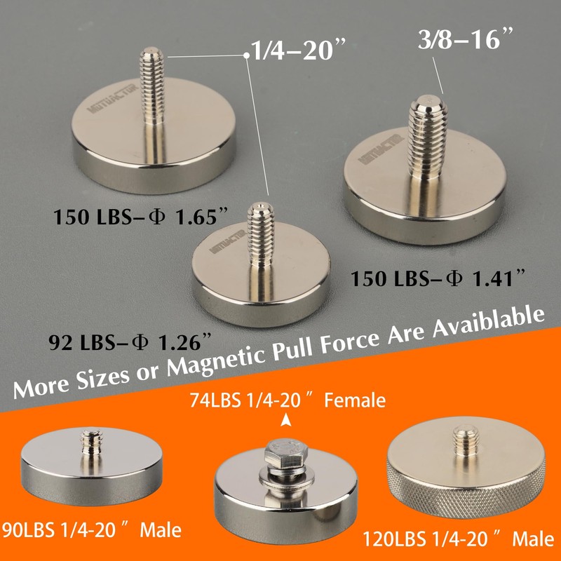 - Multi-Use of Power Magnet with Male Thread Stud:#1/4"-20 Male thread Stud, directly screw into the threaded hole of the fixed body or putting through a hole and fastening with a nut to attach any hardware assembly. Great for camera , video, display panel , automatic equipment, tools and machines