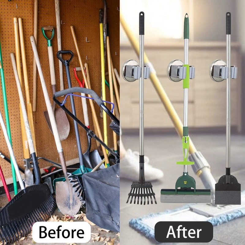 MUTUACTOR Crochet Magnétique Robuste, Porte - Balai Magnétique Fort Support Mural, Sans Perçage Porte - Balai Mobile for Arrangement and Gestion des Outils de Lavage de Cuisine de Garage (Pack of 4)