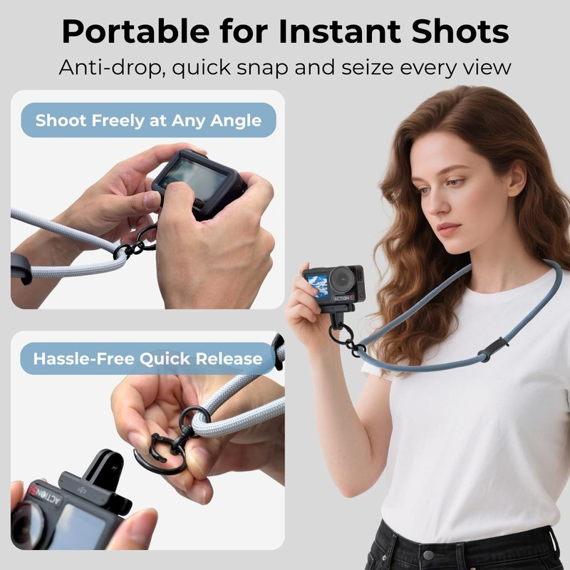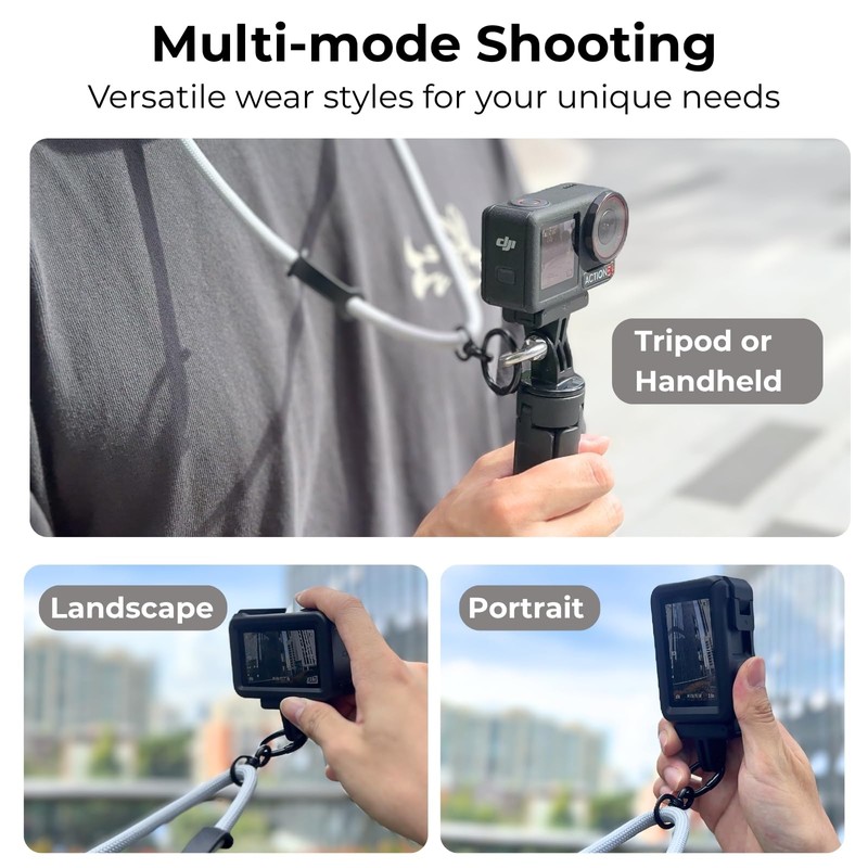 - Universal Compatibility :This neck lanyard offers superior anti-drop protection whether vlogging, walking,cycling or hiking. Fits DJI Osmo Action 5 Pro/4/3, Insta360 Ace Pro 2, GoPro Hero 13/12, DJI OsmoPocket 3, Insta360 X5/X4. Works with compact digital camera (Nikon/Canon/Sony),devices with magnetic adapter mount and any camera accessory featuring a standard 1/4" threaded hole including tripod mounts, selfie sticks, and gimbal accessories