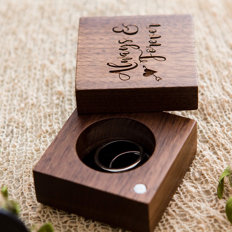 - Its natural wood grain is preserved, making every box one of a kind. Crafted with genuine walnut wood. Its lid has a magnetic enclosure securing your most precious items inside. Its box interior has a luxurious black velvet foam to make that ring stand out.
