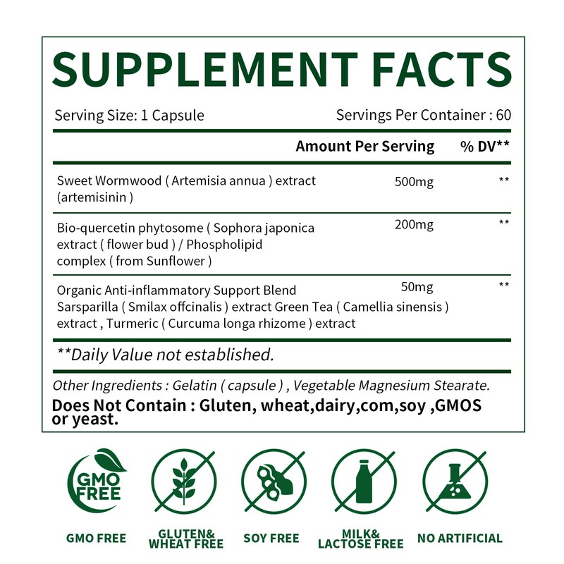 - ARTEMISININ 500 mg: Artemisinin supports Your body,500mg of Artemisinin per Serving