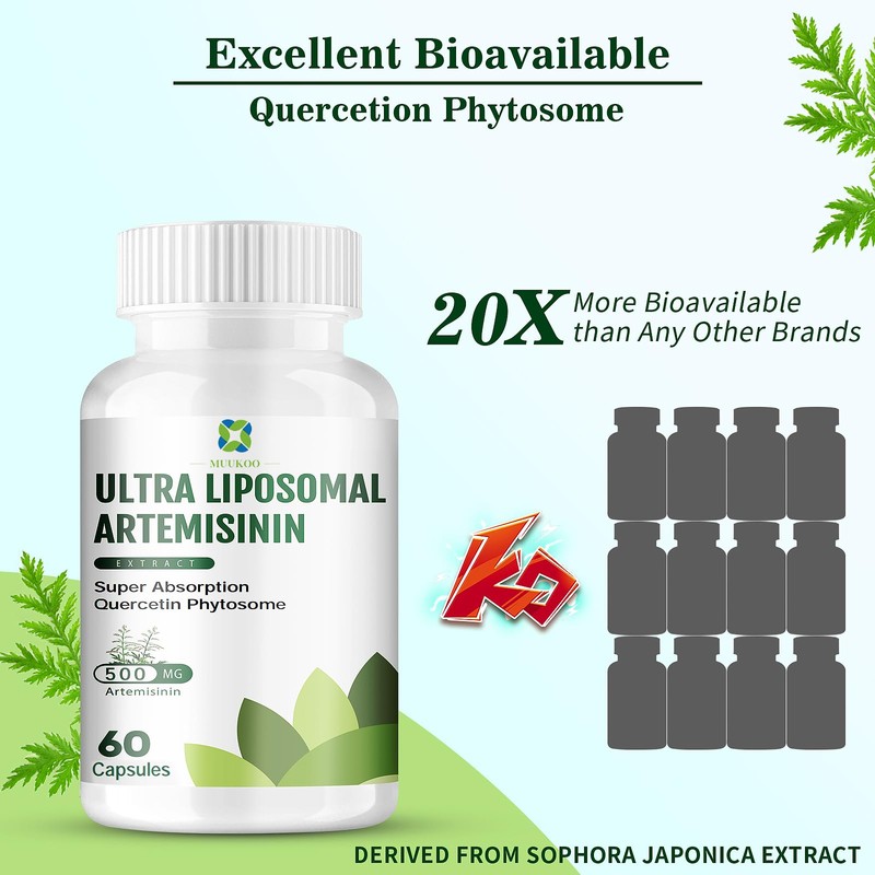 MuuKoo 500 mg Artemisinin,Supports Healthy Aging, Digestion, and Immunity - Vegan, Non-GMO - Artemisia Annua Supplement,Bio-Qurecetin phytosome Extract with Quercetin Phytosome 200 mg, 60 capsul