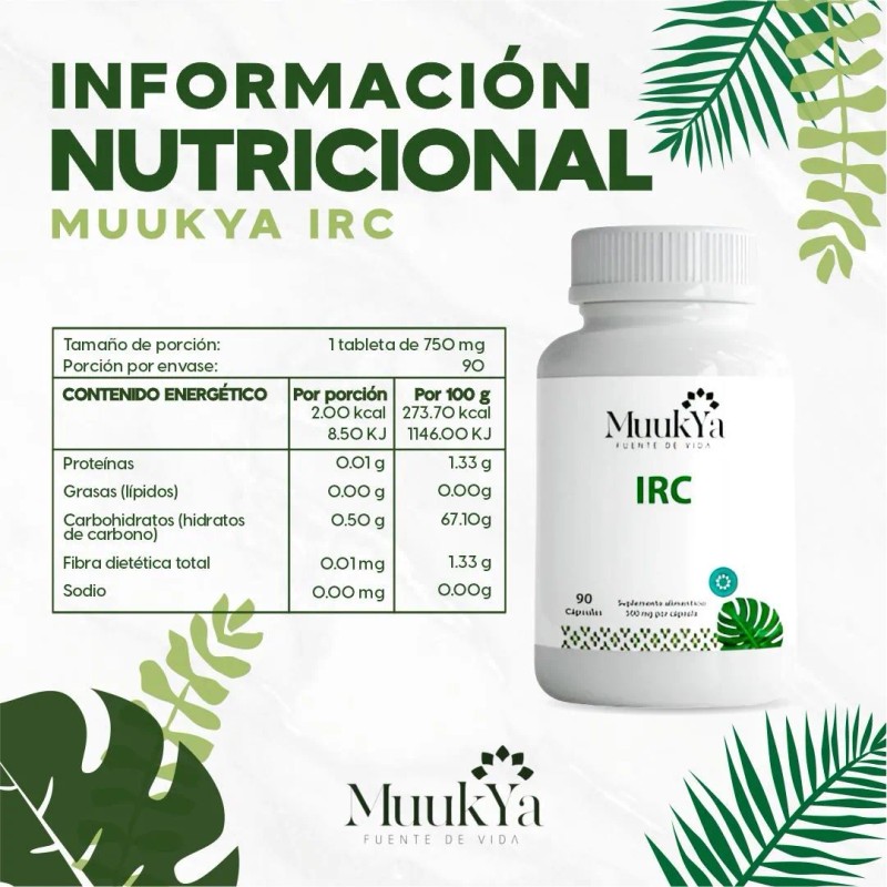 Muukya IRC es un suplemento natural para 3 meses que ofrece soporte integral para la salud renal, ayudando a la función de los riñones, la desintoxicación y la salud del tracto urinario. Siempre consulta a un médico antes de usarlo, especialmente si tienes condiciones renales preexistentes.