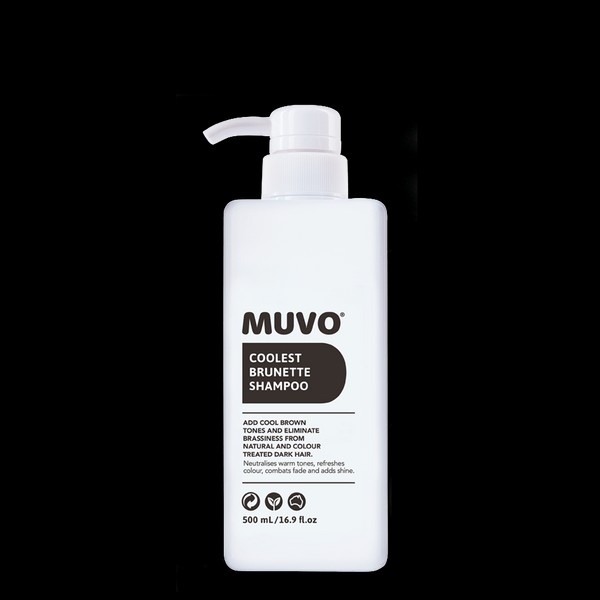 What are the benefits and features of MUVO Coolest Brunette Shampoo 500ml?- Helps keep dark hair cool by adding back cool tones.