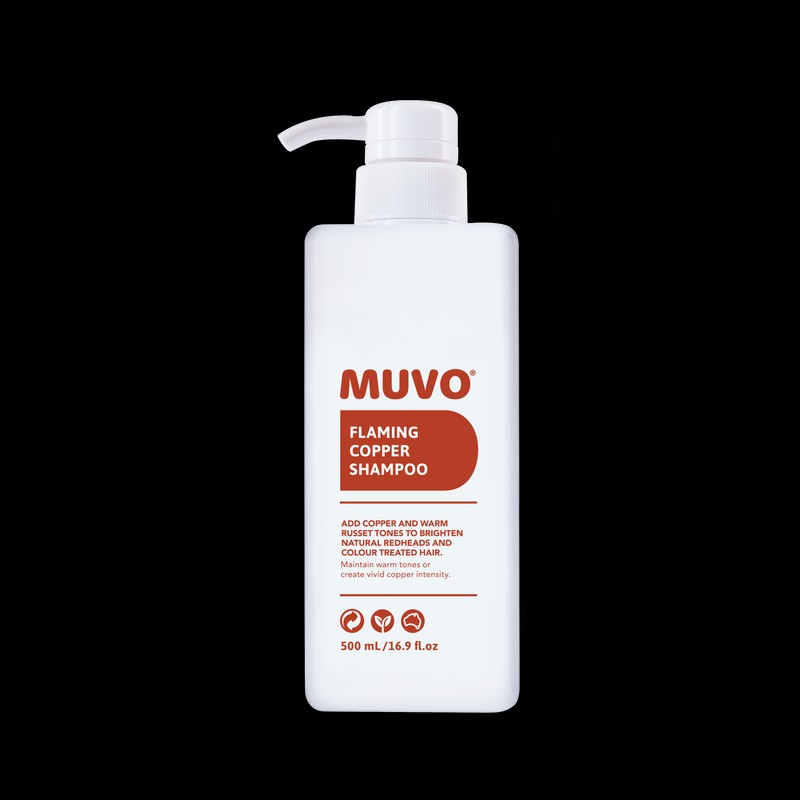 MUVO Flaming Copper Shampoo 500ml is a hydrating formulation that refreshes fading red, copper, and color-treated hair while maintaining warmth or creating vivid copper intensity.
