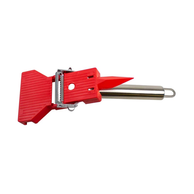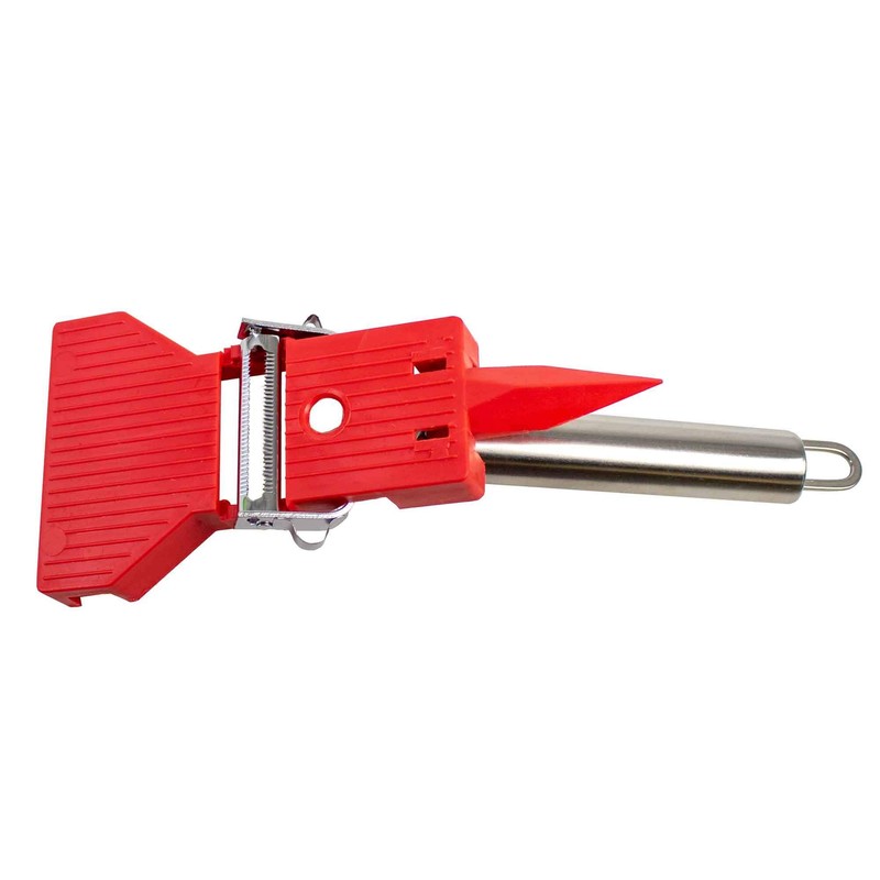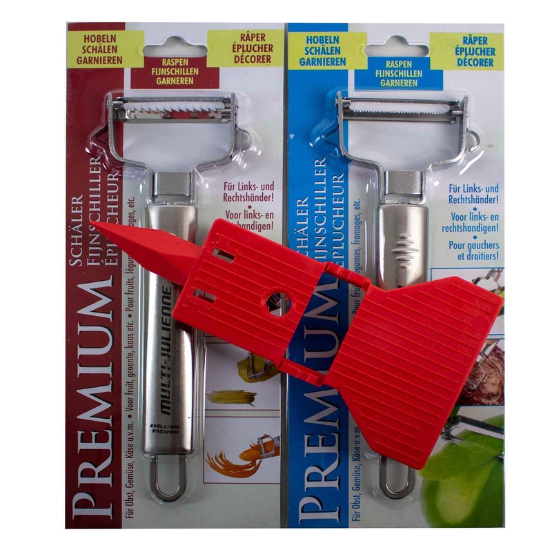 - Premium peeler made of stainless steel with garnier and orange peeling function