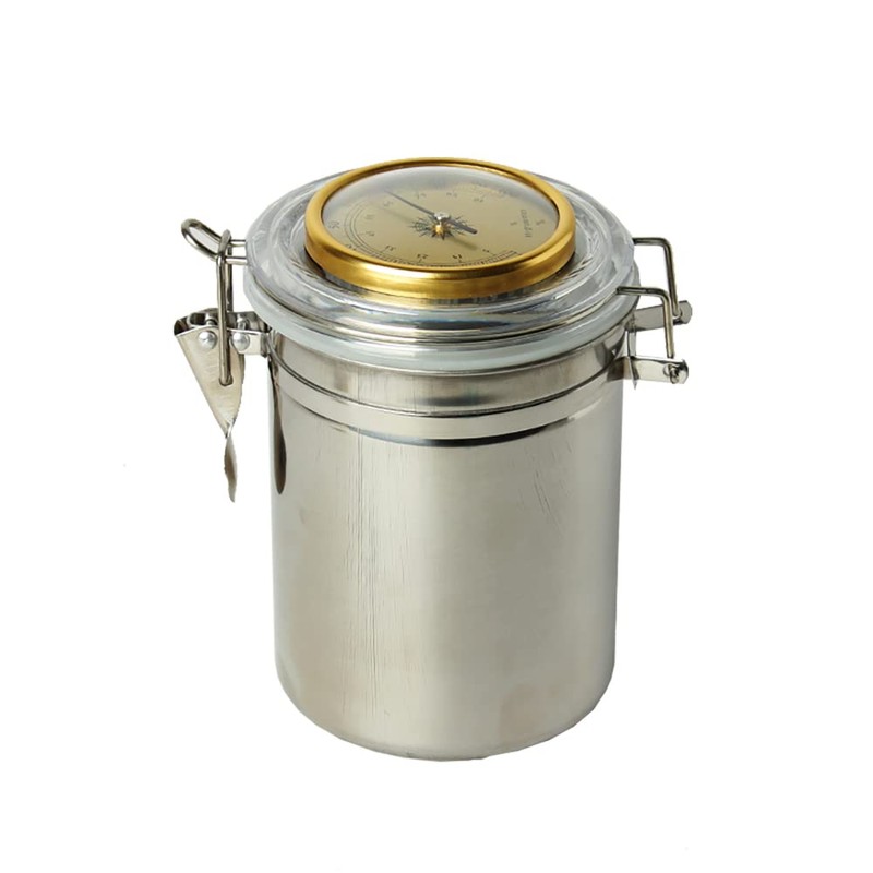 MUXIANGステンレス鋼シガータバコ用ヒュミドール加湿器ジャーコーヒー豆茶キャンディー一体型湿度計ラウンド加湿器CG0011