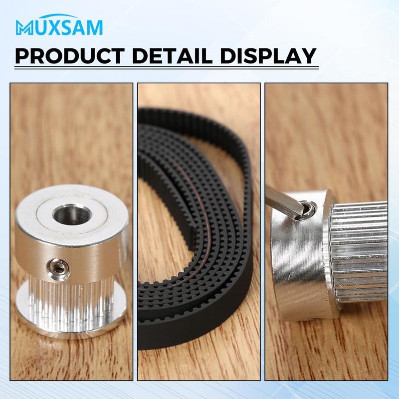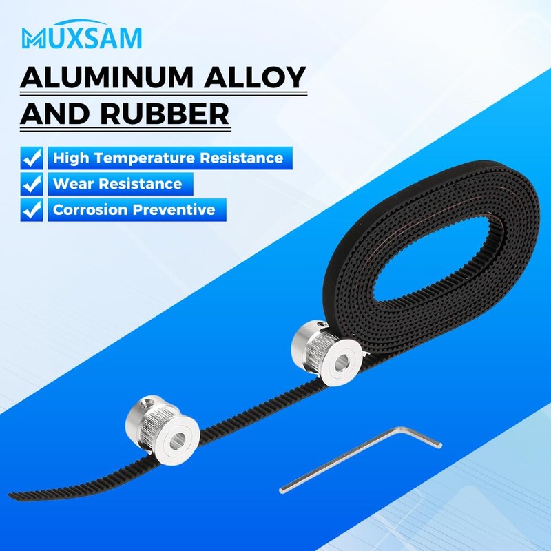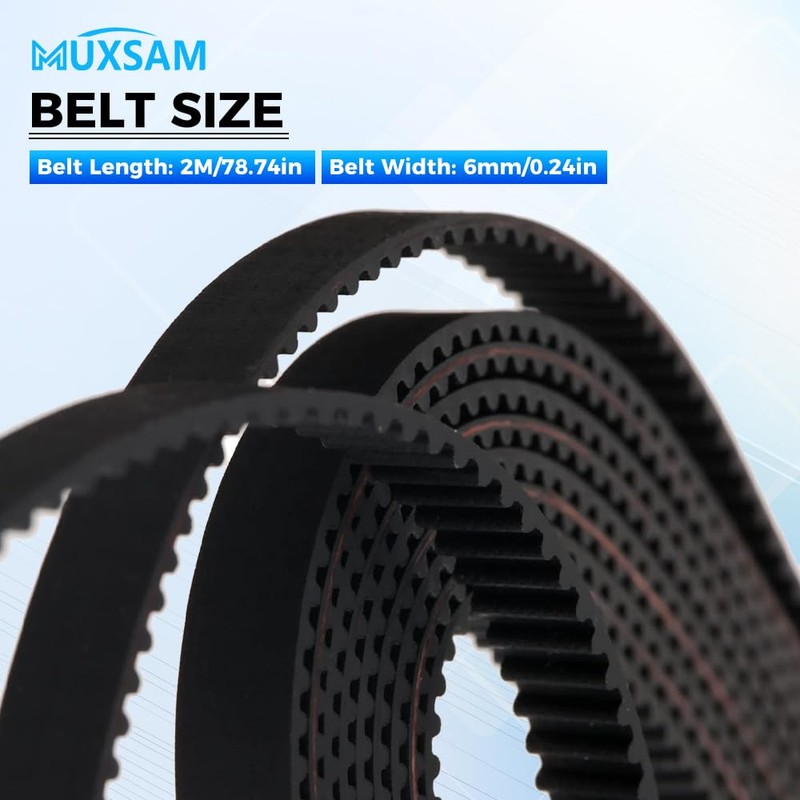 MUXSAM 2m GT2-6mm Open Belt KIT, 2Pcs GT2 Aluminum Timing Belt Pulleys and 1 Pc Allen Key for 3D Printer