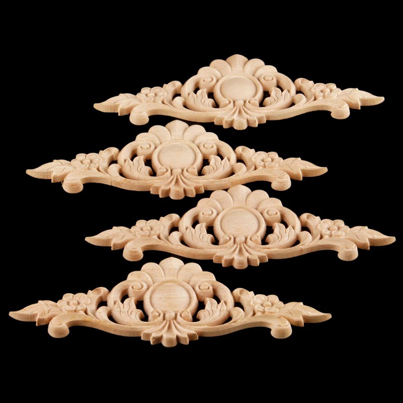 MUXSAM 4pcs Wood Carved Mouldings Onlay Applique Decal Long Unpainted Flower Door Home Decor 22 * 7cm European Style