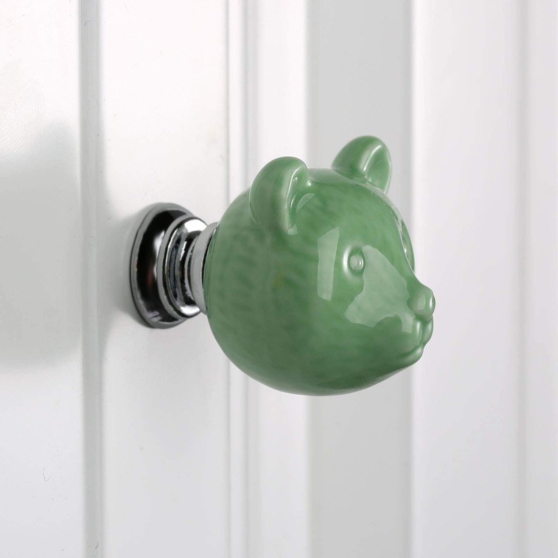 MUXSAM Door Handle Ceramic Bear Pattern Novelty Drawer Door Pull Handle Chest Cabinet Dresser Knobs (Green, 4 Pcs)