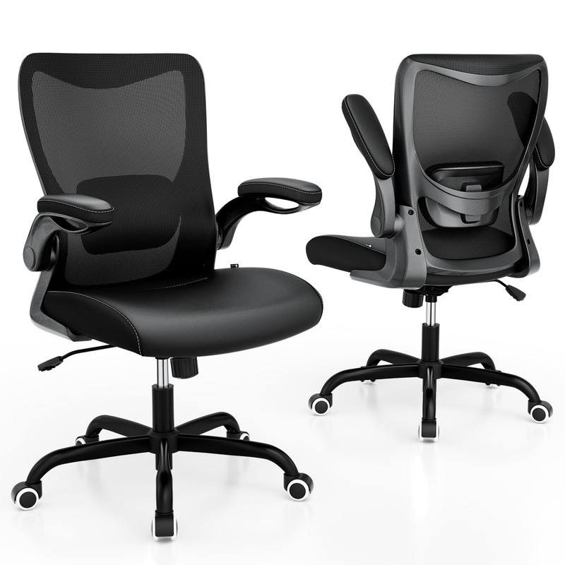 MUXX.STIL Office Chair, PU Leather Ergonomic Desk Chair with Adjustable Lumbar Support and Flip up Armrest, Breathable Mesh Computer Chair for Home Office, Black
